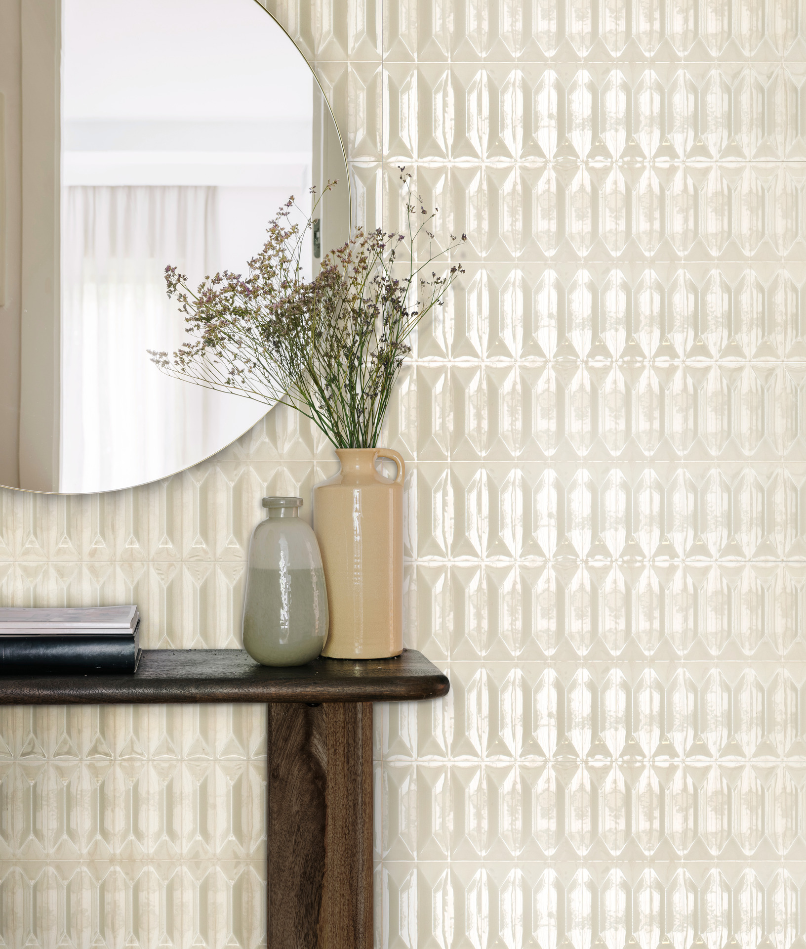 Un rivestimento decorativo può trasformare anche un semplice disimpegno in un angolo di forte impatto visivo: la collezione Lucida di Ragno, con i suoi richiami alla matericità della maiolica smaltata a mano, è perfetta per questo tipo di applicazioni. Ideale per chi cerca un effetto wow elegante e mai eccessivo.