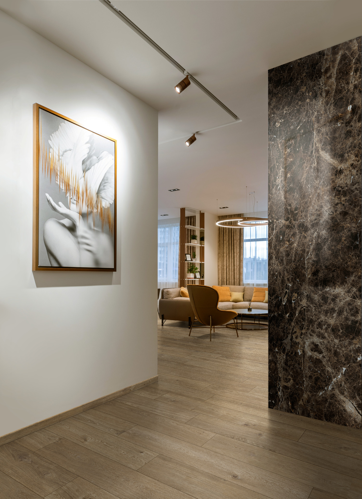 Infine, la coerenza tra spazi resta fondamentale. Scegliere lo stesso materiale — o diverse varianti della stessa collezione — per ambienti contigui permette di mantenere una lettura visiva fluida, in cui il disimpegno non è più solo un luogo di transizione, ma parte integrante del progetto di interior design.