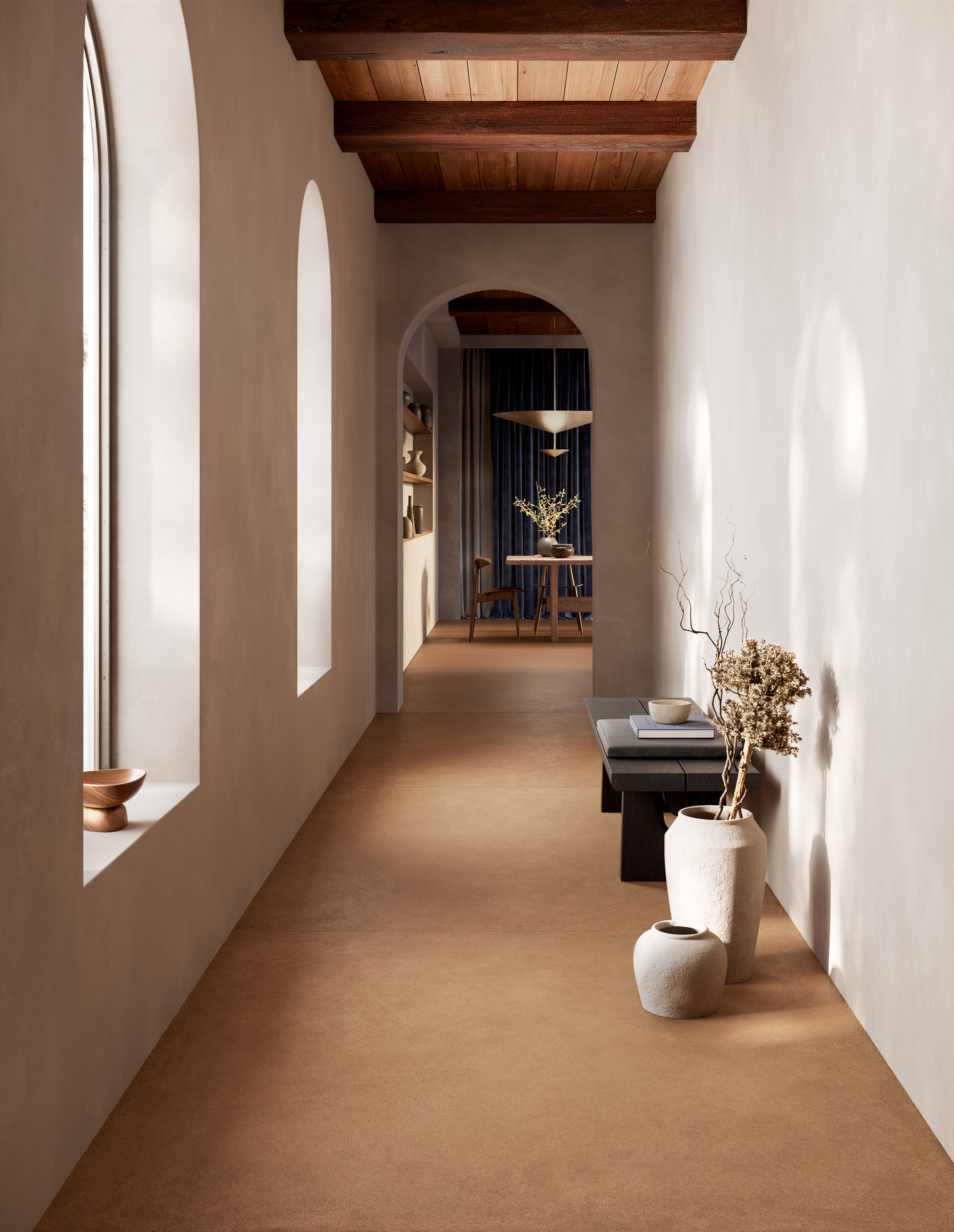 Collezioni come Ossimori e Secret permettono di estendere questa sensazione di comfort con superfici che trasmettono autenticità, senza rinunciare alla resistenza.