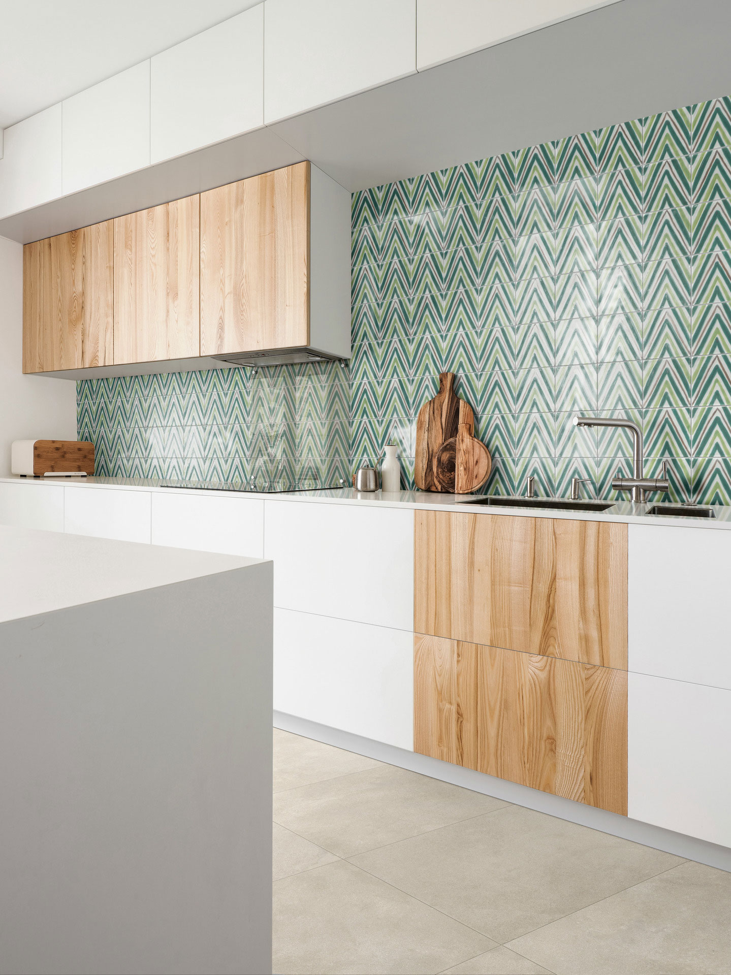 Luogo dove cucinare insieme alla famiglia e gli amici e trascorre del tempo di qualità, l’ambiente cucina può essere integrato a vista con il grande soggiorno o un ambiente separato con possibilità di pranzare. Guidano il progetto le linee essenziali e una palette dai toni freddi a contrasto col legno naturale.