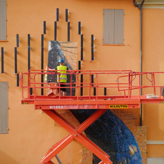La progettazione e l’installazione dell’opera – alta ben sedici metri – sulla facciata di Palazzo dei Musei è il risultato della sinergia tra il Comune di Reggio Emilia (Musei Civici) e l'azienda, la cui divisione specializzata ha seguito la produzione delle ceramiche che compongono l’opera e ha ospitato Fontcuberta durante le fasi di produzione e stampa digitale.