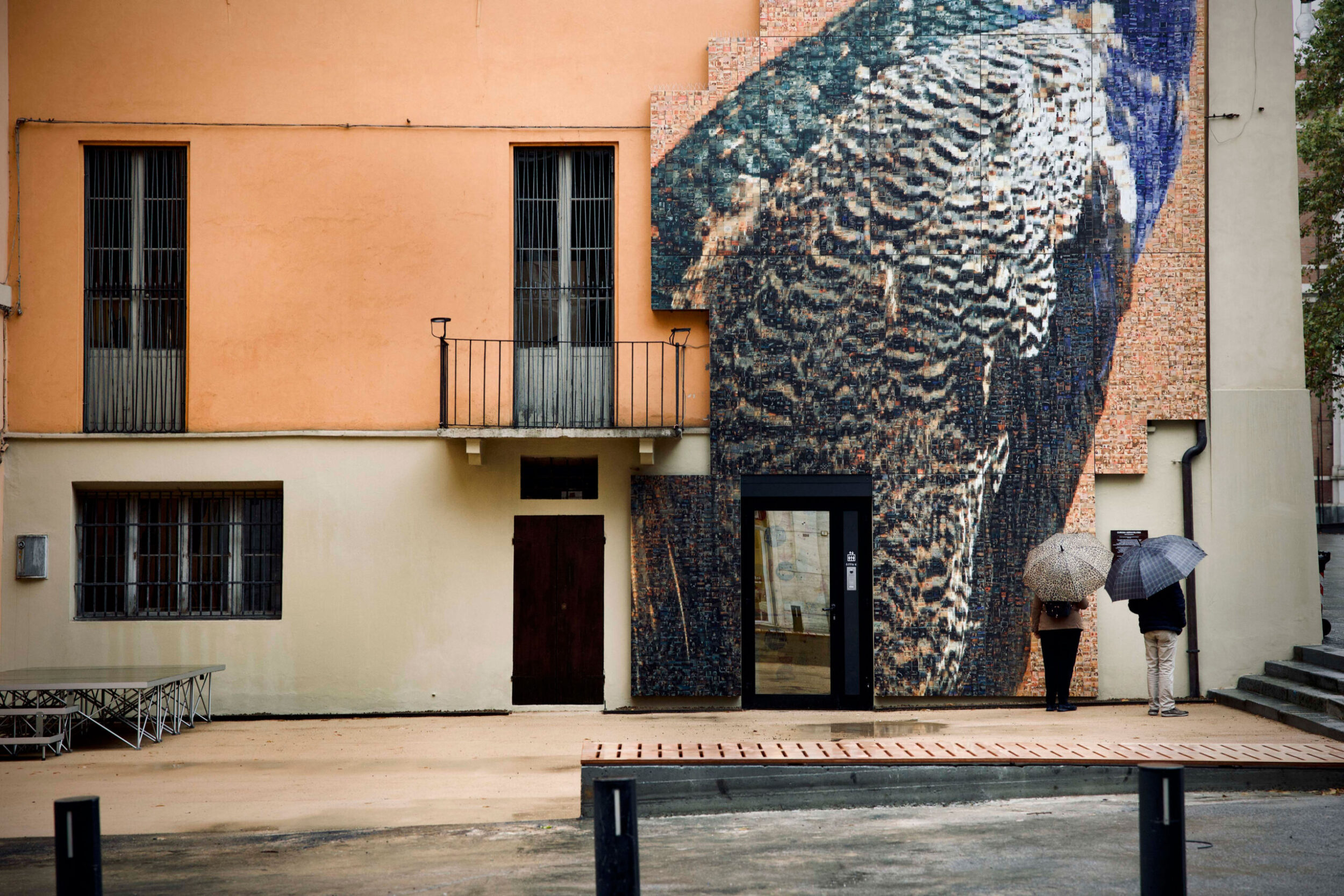 Monumentale per impatto architettonico e per innovatività, Curiosa Meravigliosa si compone di ben 30 lastre di 120×240 cm in gres porcellanato foto-impresse che integrano l’architettura esistente e completano l'intervento di riqualificazione della piccola piazza adiacente ai Musei Civici per riportare questo luogo al pieno utilizzo e per garantire un "nuovo" punto di incontro, cominciando dall'arte, attraverso un’azione di coinvolgimento attivo della comunità.