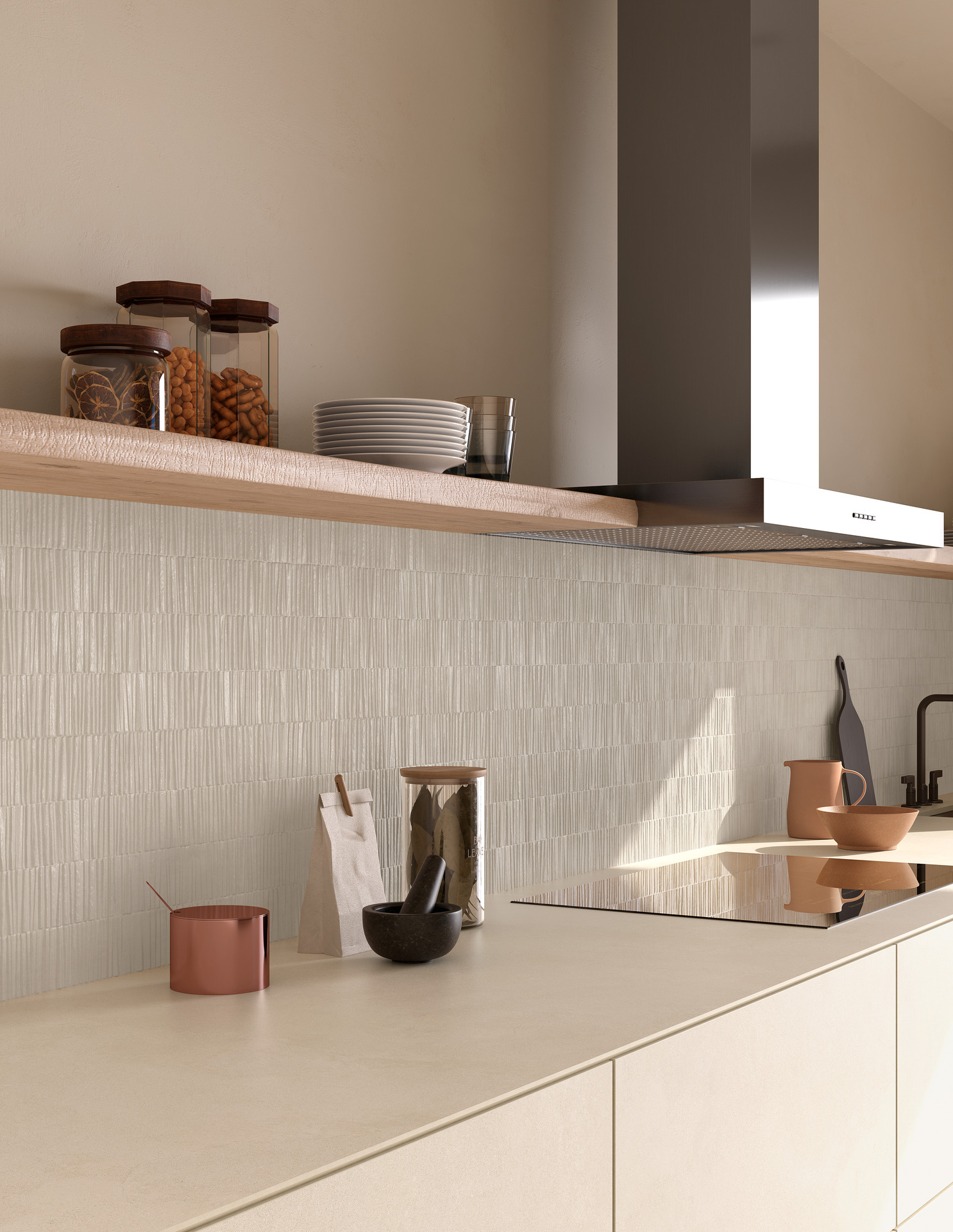Hand è la risposta per chi cerca superfici neutre, materiche e contemporanee, capaci di dare forma a spazi eleganti e silenziosi, dove la bellezza risiede nella purezza della materia