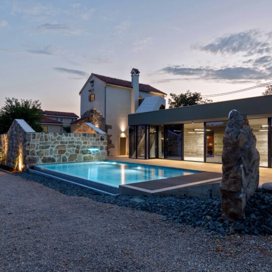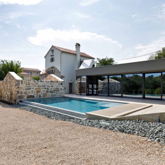 Il complesso si chiama Jerini House, in onore della famiglia che vi ha vissuto per duecento anni, e ha rappresentato una vera e propria sfida per le progettiste, Branka Juras e Lorena Posinkov dello studio Branka Juras Architects. Ciò che hanno realizzato è la dimostrazione del conflitto perpetuo tra la volontà di preservare l’identità e l’eredità architettonica tradizionale e la necessità di rinnovare il patrimonio e l’architettura dei villaggi croati tradizionali.