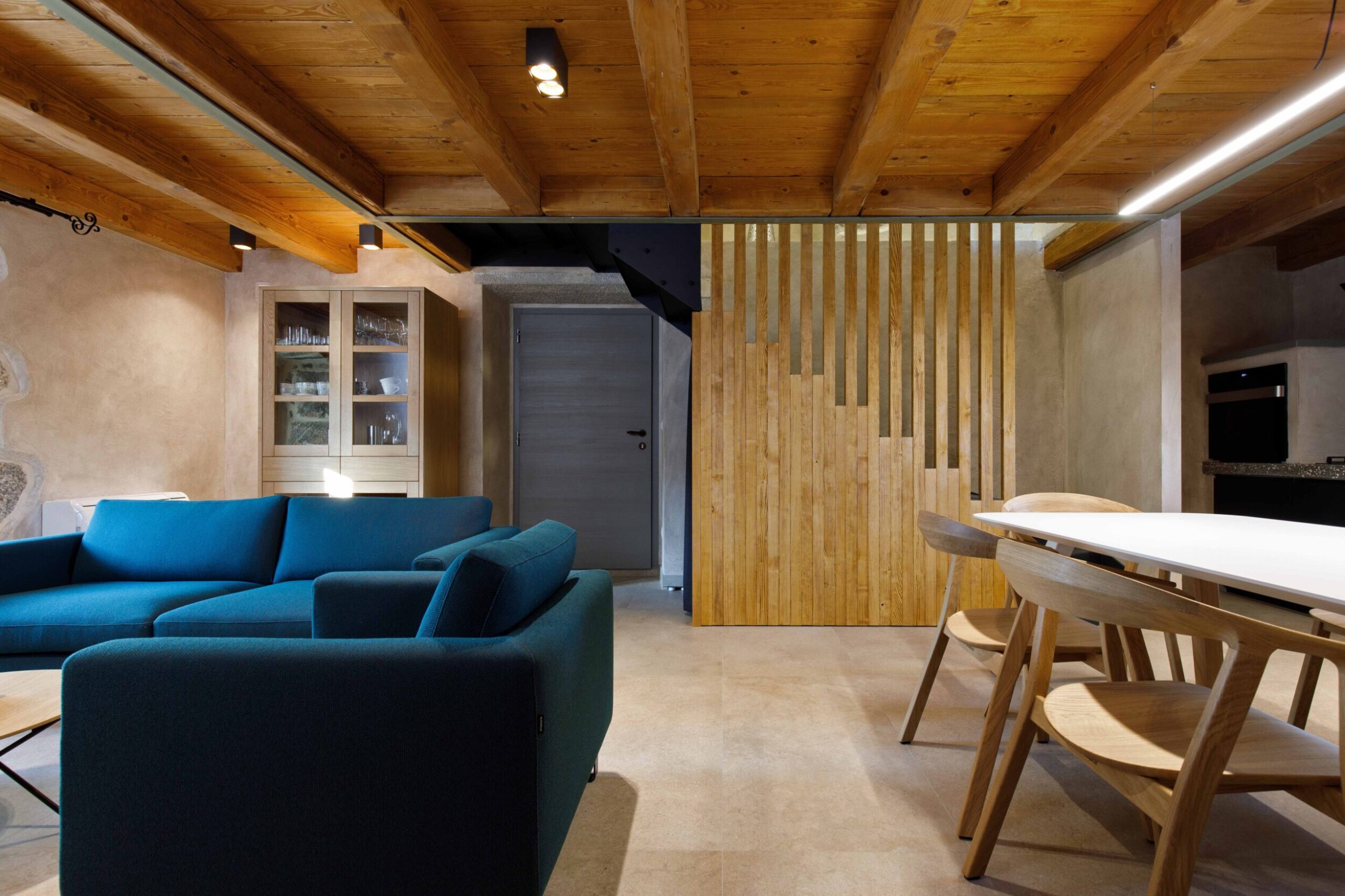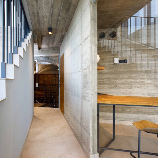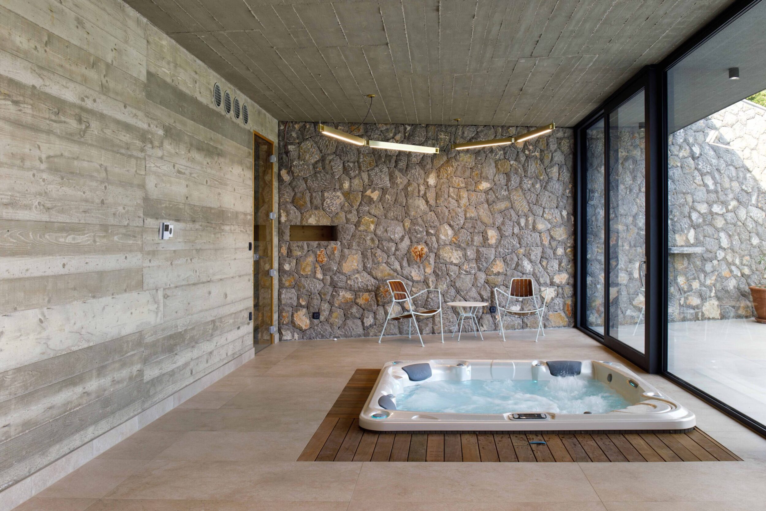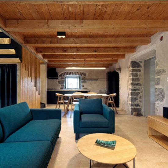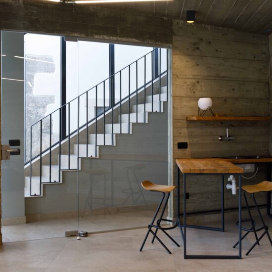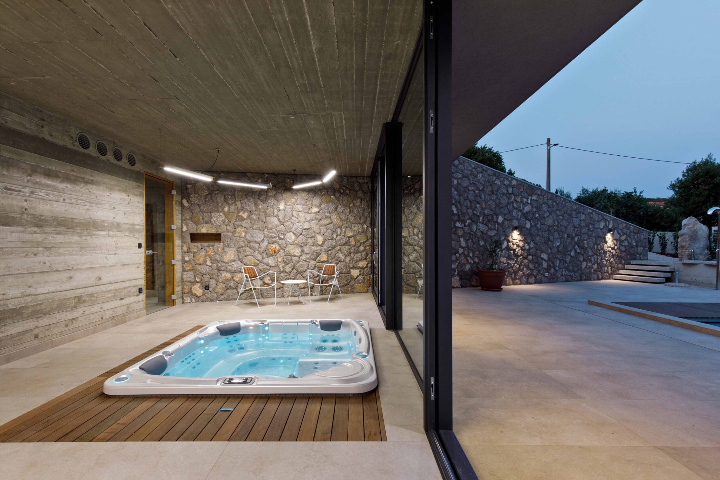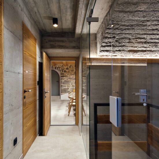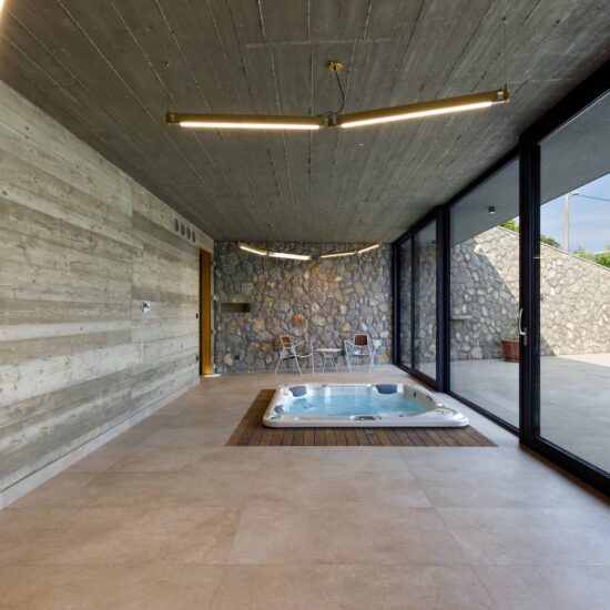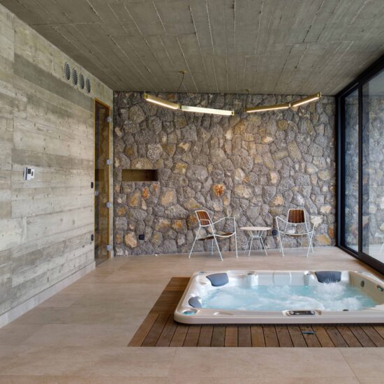 Al posto dell’abitazione familiare principale si trova la villa più grande, annessa alla SPA con zona fitness e piscina idromassaggio interna, separate da una vetrata dalla grande piscina esterna. L’area un tempo destinata al bestiame di piccola taglia fa oggi spazio alla terrazza con solarium, cucina open air e zona pranzo. L’antico fienile ospita la seconda villa, mentre l’ex porcilaia è stata trasformata in lavanderia funzionale per l’intera struttura ricettiva.