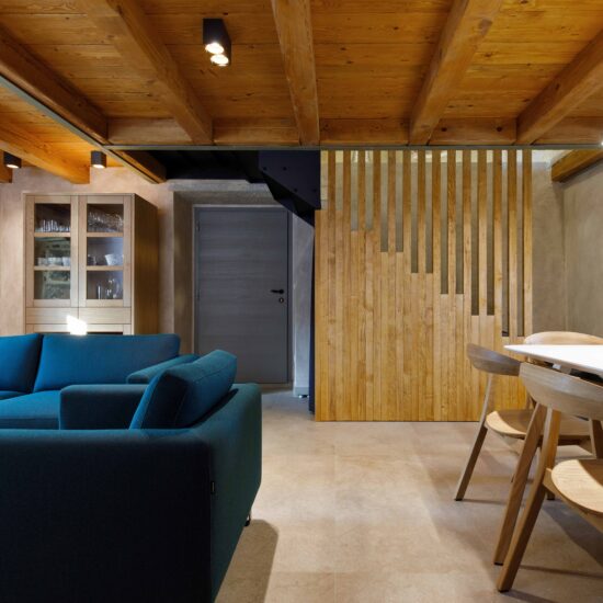 Mentre la pietra caratterizzava esterni e interni della costruzione originaria, i materiali utilizzati per l’intervento di ricostruzione sono cemento, legno e ceramica. Il gres porcellanato, nello specifico, riveste il pavimento indoor e outdoor uniformando lo stile della Jerini House nel ricordo dei colori dell’edificio di un tempo. L’utilizzo di una collezione indicata per diverse tipologie di posa e destinazioni d’uso, consente di adattare spessori e formati alle differenti necessità costruttive.