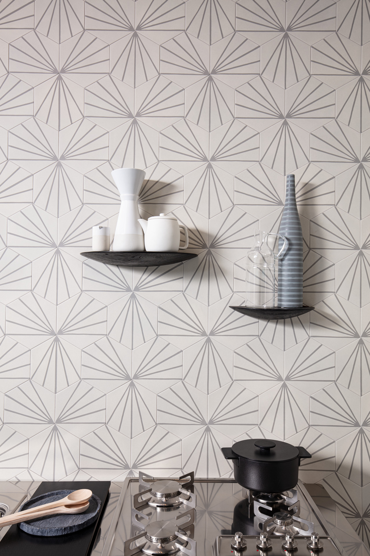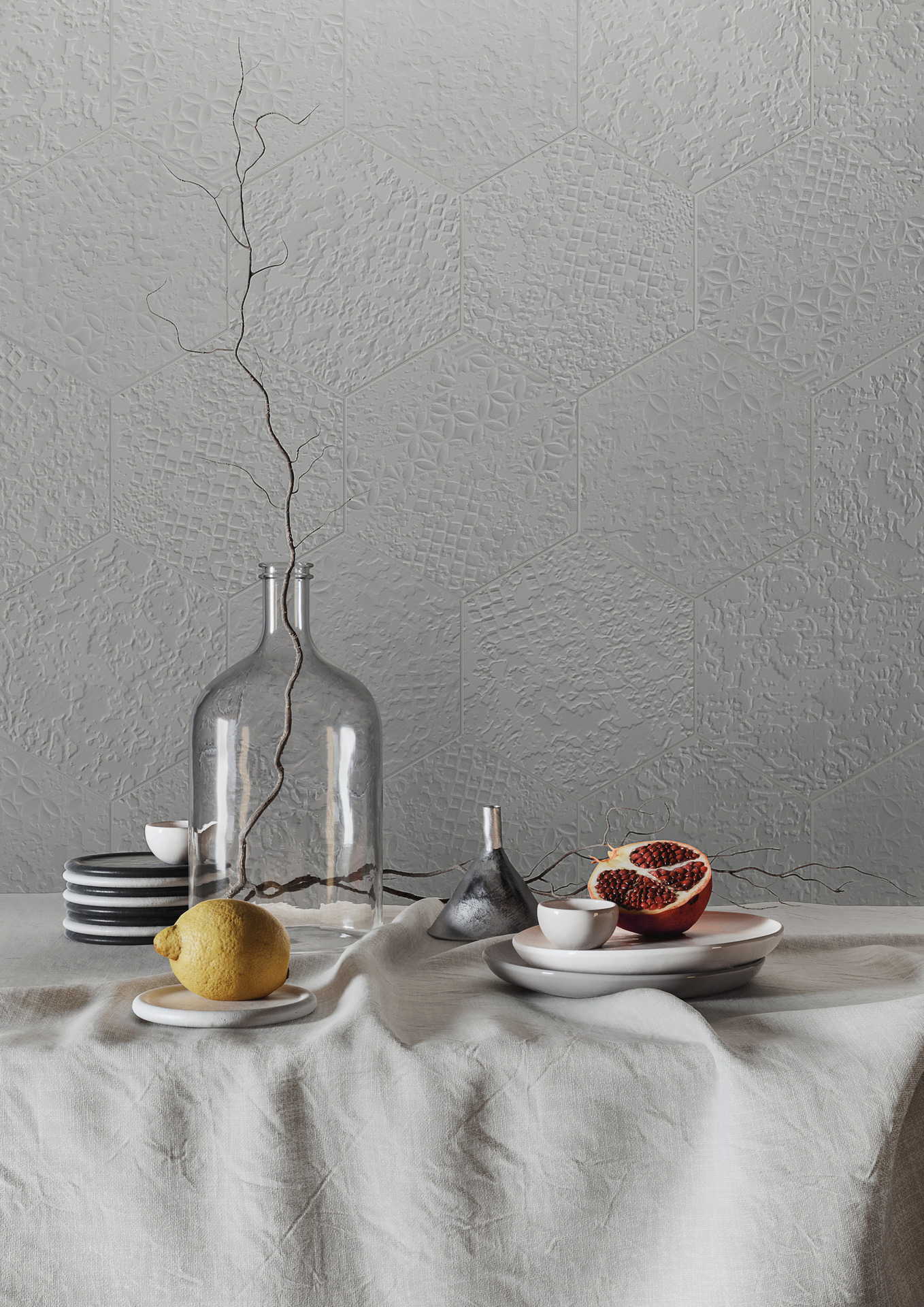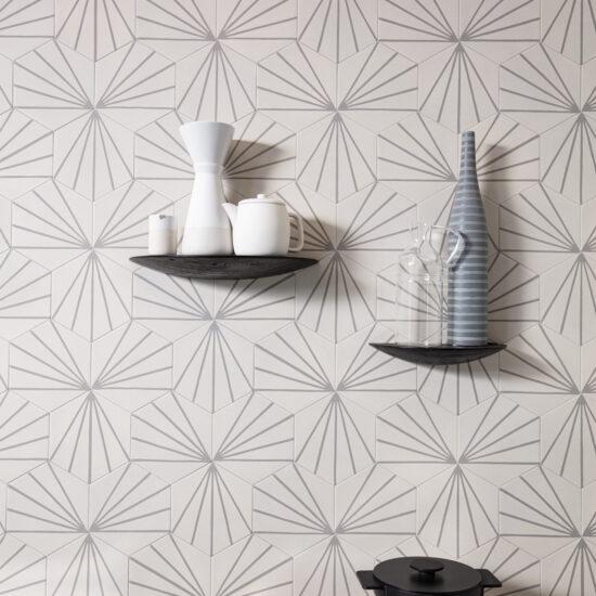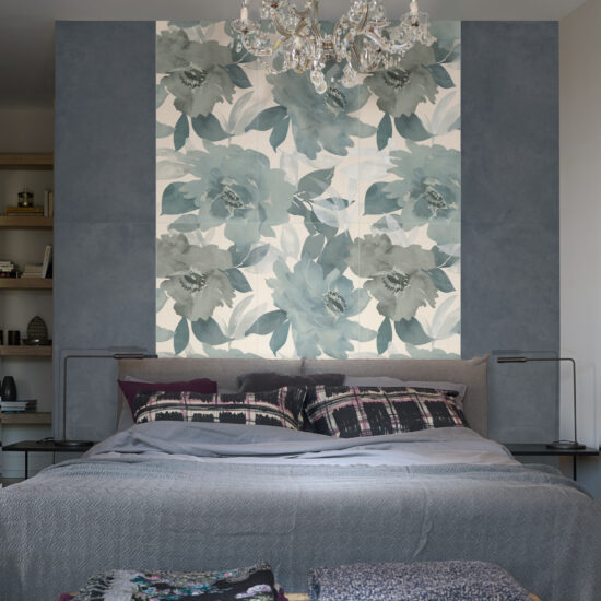 La palette cromatica, composta da 8 diversi colori, è infatti fresca e bilanciata tra accenti monocromatici di blu, verde e rosso da accostare ai toni neutri del grigio e beige; i disegni grafici del formato esagonale e i pattern d’ispirazione botanica e orientale con foliage, strutture 3D e mosaici, immergono in un’atmosfera abitativa esclusiva.