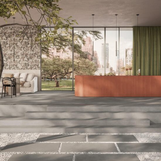 Ben sette i formati tra cui scegliere per uso interno ed esterno, a pavimento e rivestimento: il 120×120 e il 60×120 cm a spessore 6 mm e quelli da 75×150, 75×75, 60×60 e 30×60 cm a spessore 10 mm. Completano la collezione la forma esagonale 21×18,2 cm – ideale come fondo decorativo – e la proposta Outdoor XT con spessore maggiorato 20 mm nel formato 60×120 cm, ideale per le pavimentazioni esterne.
