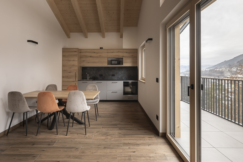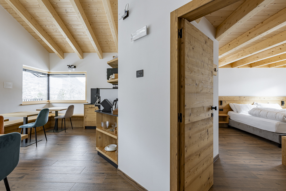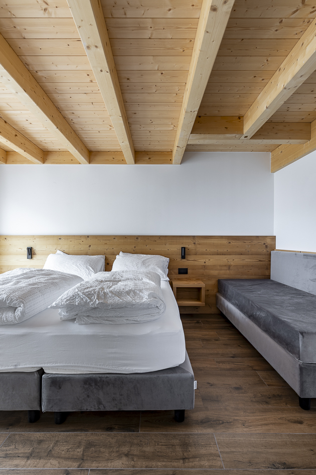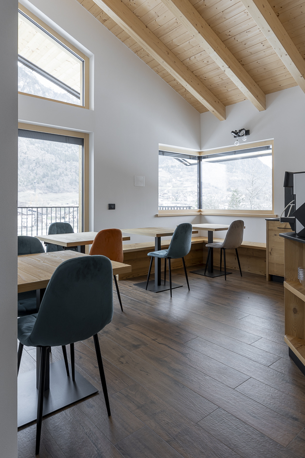 Il progetto si fonda su principi di bioedilizia: l’edificio in legno garantisce efficienza energetica e un’atmosfera calda e accogliente. La progettazione e la realizzazione sono state curate da XLam Dolomiti, realtà specializzata nelle costruzioni in legno ad alte prestazioni, che ha contribuito a definire un edificio sostenibile e perfettamente inserito nel contesto alpino.