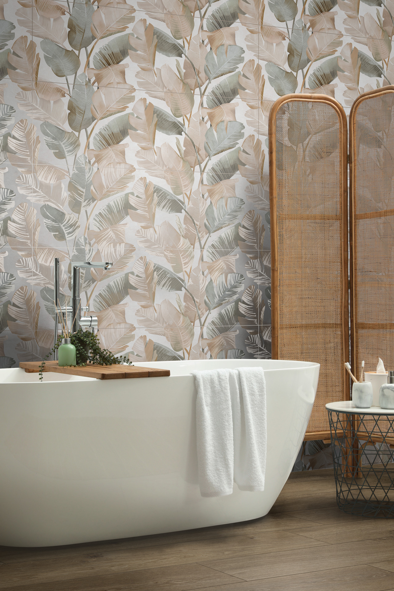 Scegliere piastrelle decorative con motivi floreali al posto della tradizionale carta da parati significa unire l’estetica alla praticità. A differenza della carta, infatti, il gres porcellanato è estremamente resistente all’umidità, all’usura e al tempo: non teme schizzi d’acqua, vapori o sbalzi termici, rendendolo ideale per ambienti come il bagno o la cucina. Inoltre, non scolorisce con la luce solare e non richiede interventi di manutenzione periodica. Pulire le piastrelle in gres è semplice: basta un panno umido e un detergente neutro per rimuovere polvere e sporco, senza rischi di danneggiare la superficie o compromettere il disegno.