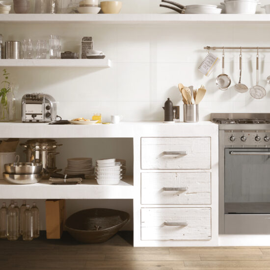 Chi, oltre alla vista, riconosce al tatto un’inestimabile valenza comunicativa, amerà invece il bianco della collezione Tempera, delicatamente patinato, e quello della ceramica effetto resina di Flex, concreto, presente e potenzialmente coordinabile, a contrasto, con i colori d’accento disponibili a catalogo.