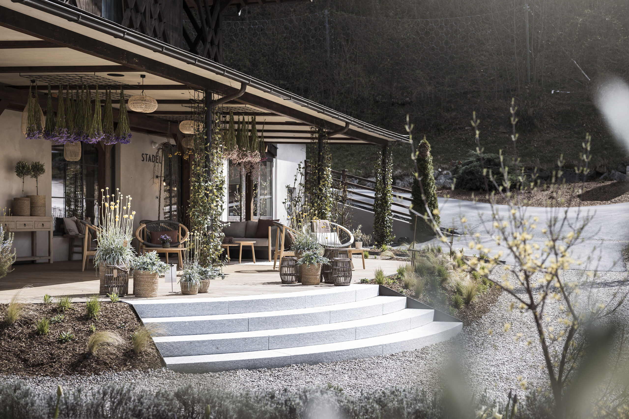 Racconta Maddalena Gioseffi, coordinatrice del progetto di interni, “In continuità con lo stile bohémien delle camere, i progettisti hanno introdotto una variazione nei toni portandoli in accordo con cromie più calde e mediterranee, in contrasto con i verdi dell’albergo, ai piani superiori. Una grande terrazza affaccia sul paesaggio montano e sulla strada adiacente aprendo la struttura dell’hotel al pubblico, senza sacrificare privacy e comfort.”