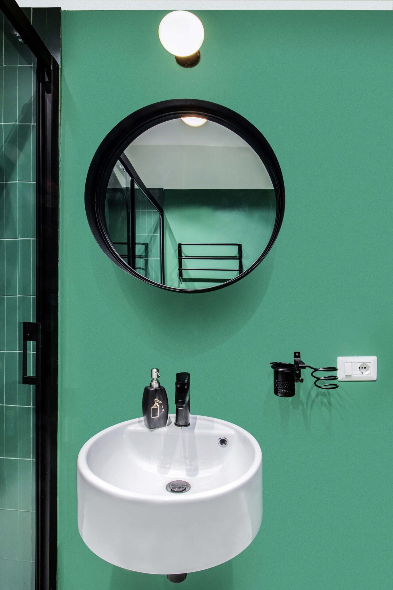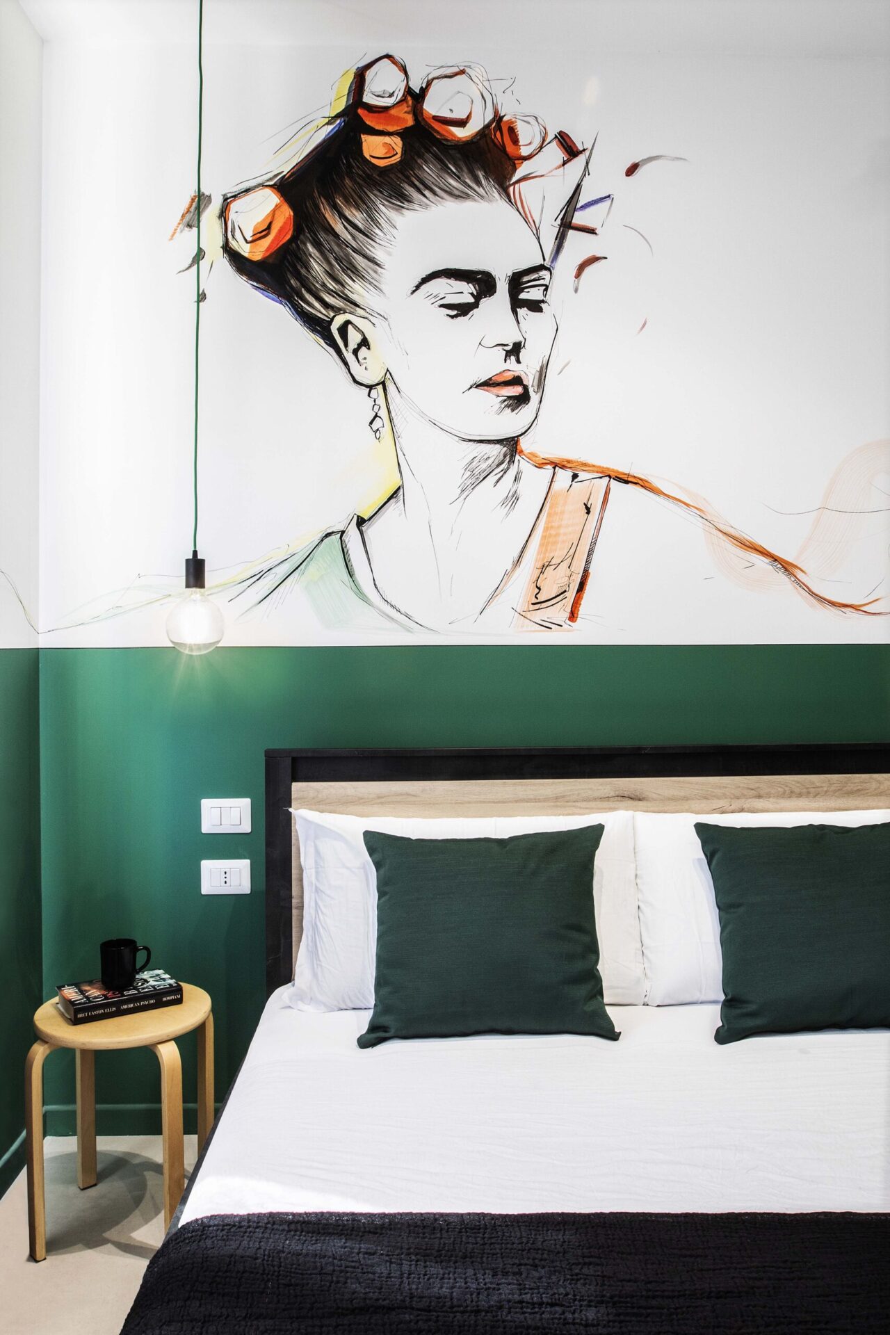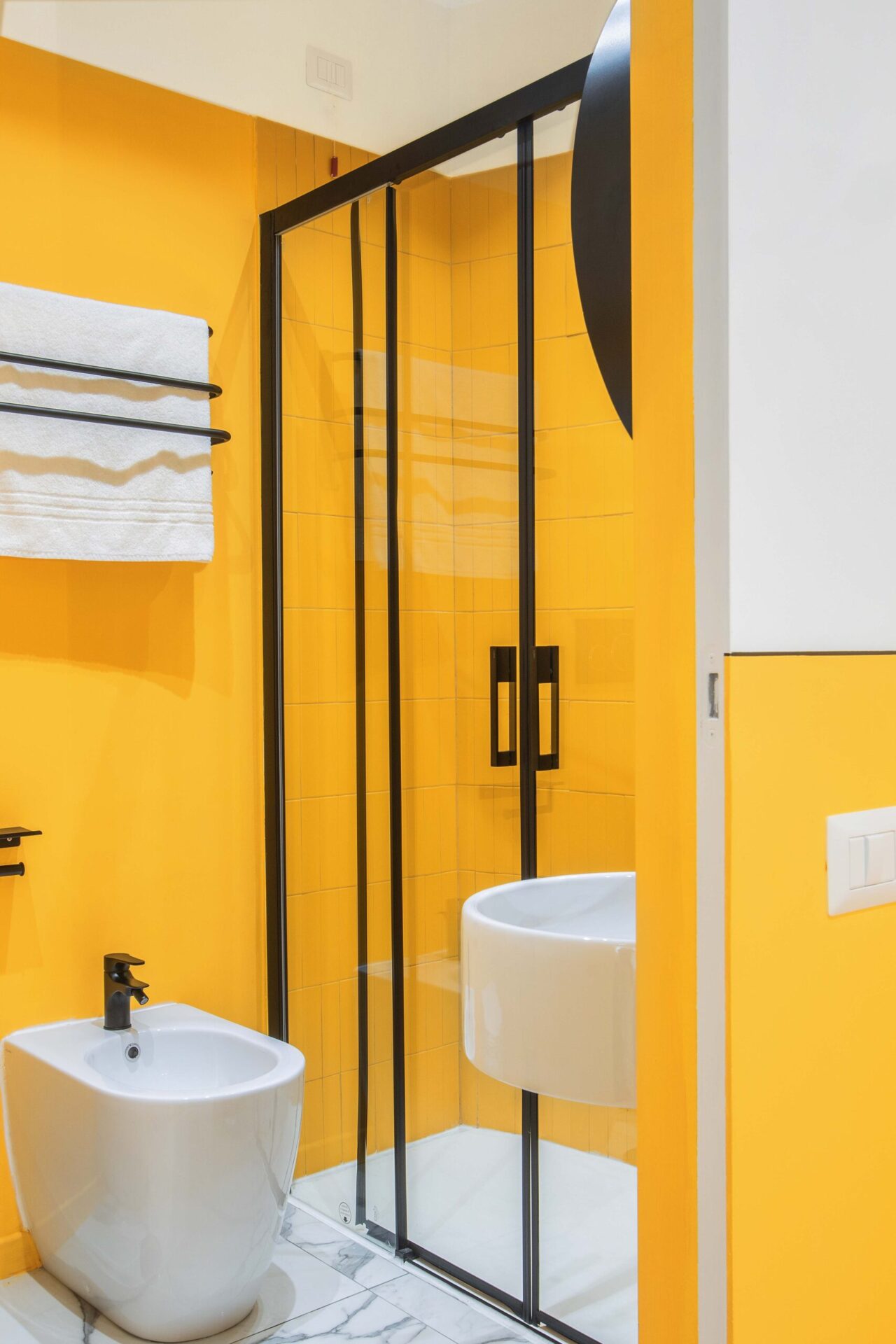 A parete, invece, è il colore a essere protagonista. Il bagno di ciascuna suite ha il suo: il criterio è quello di catalogare l’offerta ricettiva attraverso un parametro visivamente stimolante, immediatamente riconoscibile e, nel tempo, permanente nel ricordo del soggiorno romano.